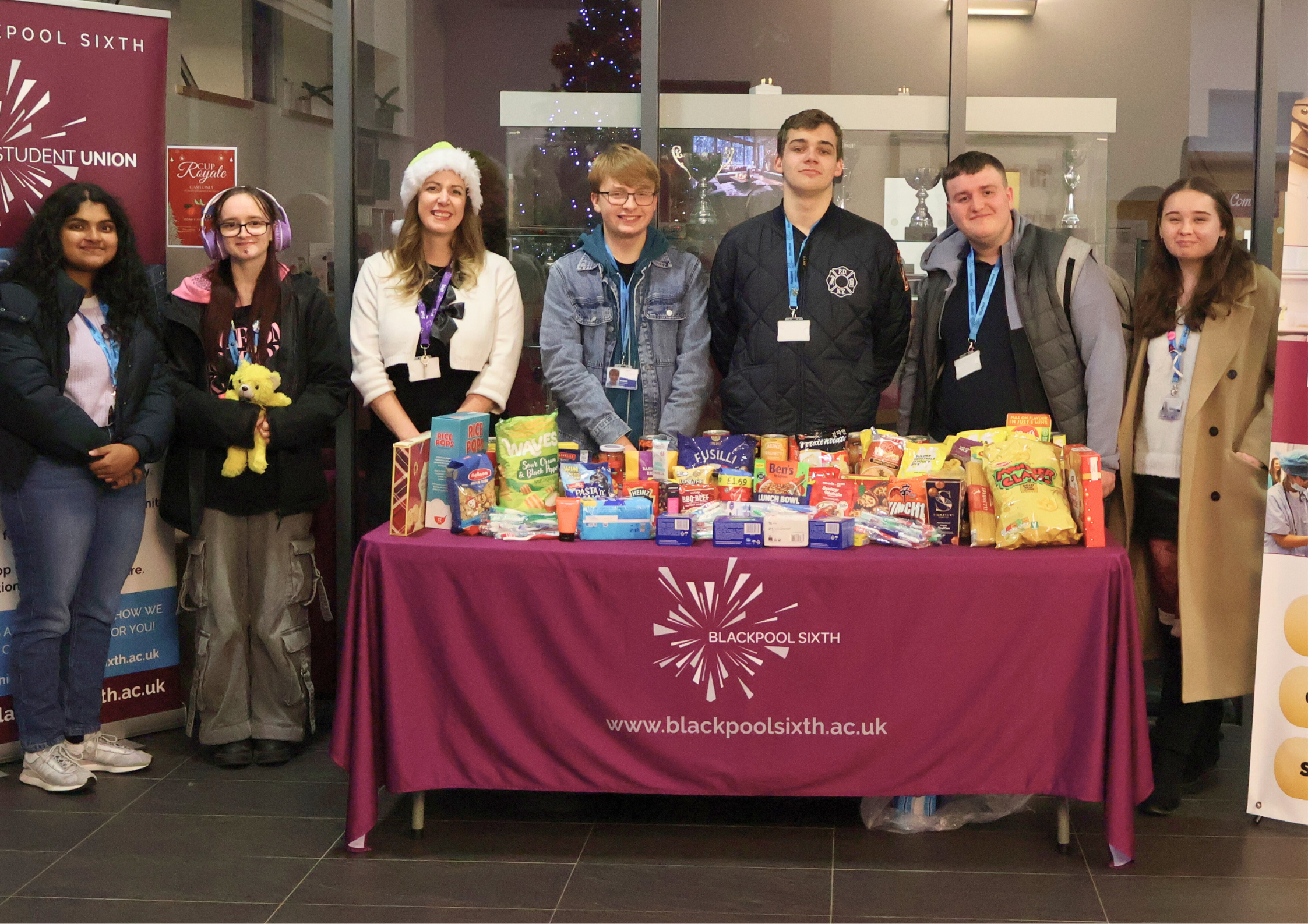 Meanwhile, the Blackpool Sixth Students’ Union led The Festive Feed food collection in partnership with Blackpool Foodbank. From late November through to mid-December, donation tables in the foyer filled steadily as students and staff gave what they could, whether a single tin or a full bag, to support local families facing food insecurity.